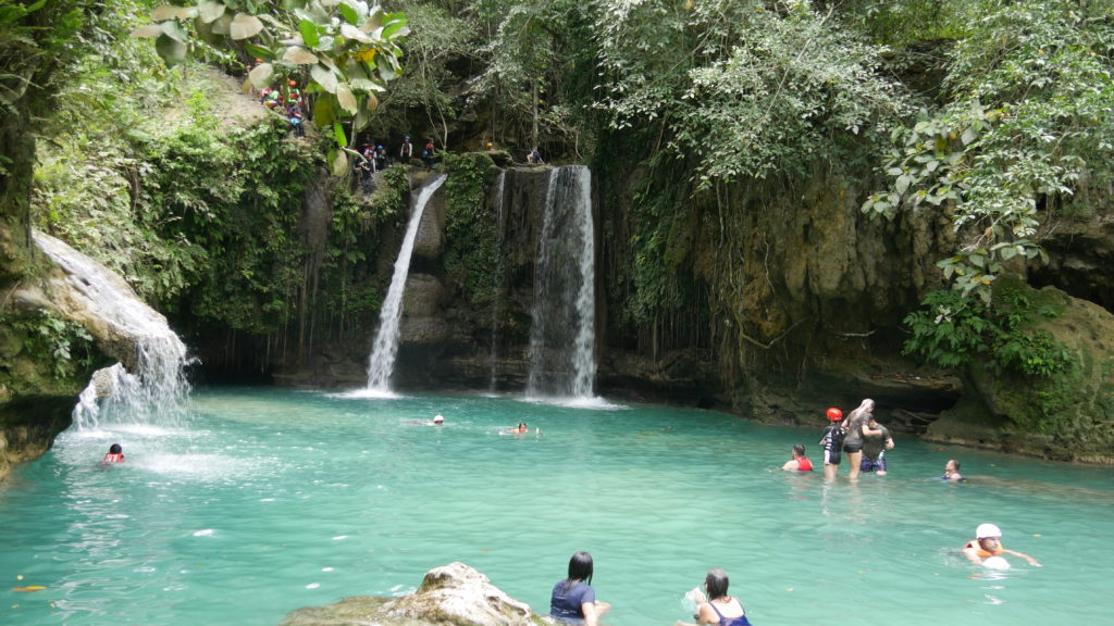 Samedi, 2 février, dernier weekend aux Philippines. La dépression est présente mais faut se bouger et profiter des dernières heures. L’excès d’air climatisé respiré, m’a littéralement coupé la voix. Un mot sur deux ne sort même pu de ma bouche… Mais direction l’attraction principale, Kawasan Fall, une cascade d’eau sur plusieurs niveaux. 20min de bus pour y aller, c’est au sud de Moalboal.