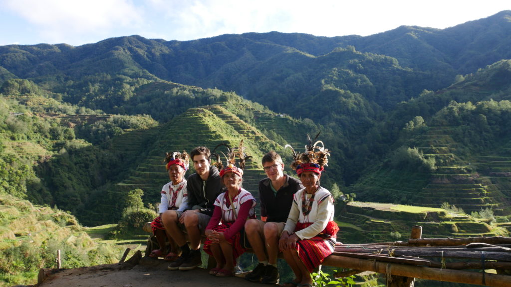 On passe le reste de la journée, 15h-19h, dans un grand parc de Quezon City. Petite glace à base de noix de coco, on remange un p’tit truc puis on monte dans le bus vers 22h. 9h de route pour rejoindre Banaue. Le bus supposé de luxe est finalement pas ouf, correct on va dire. Pas de wifi, pas de prise pour recharger nos téléphones. Dommage, va falloir économiser. Impossible de dormir… pourquoi ? encore un problème de voisinage. Le gogole de devant qui couche son siège sur mes genoux. Casse c***lle. De plus, la route est pourrie, beaucoup de virages, un chauffeur fou (comme tous les chauffeurs de bus philippins en fait). C’était long… On arrive à Banaue vers 5h, on s’enregistre à l’office du tourisme, on retrouve notre guide, JJ.
