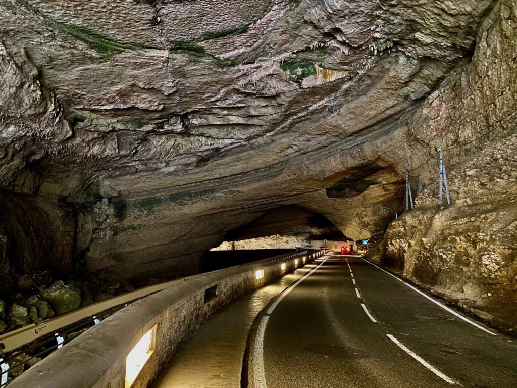 Un dépannage d’une dame dont le compteur avait un problème plus tard, je fais une pause dans une boulangerie. Pas trop inspiré par les produits proposés, je prend une pizza au roquefort. Vraiment pas top mais ça fait l’affaire. On peut manger de tout dans ce genre d’aventure. Je passe dans une petite surprise signée Pascal Bride, le traceur du parcours : une grotte, Le Mas-d’Azil ! Incroyable de passer dans ce genre d’endroit.