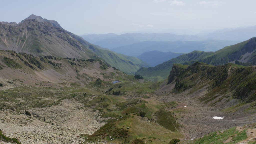 A peu près au milieu à droite. C’est le col de Bastan. Une vingtaine de minutes pour monter en haut, en tirant bien la langue. Mais la vue au sommet en valait la peine ! (voir 3 photos au dessus et celle qui suit)