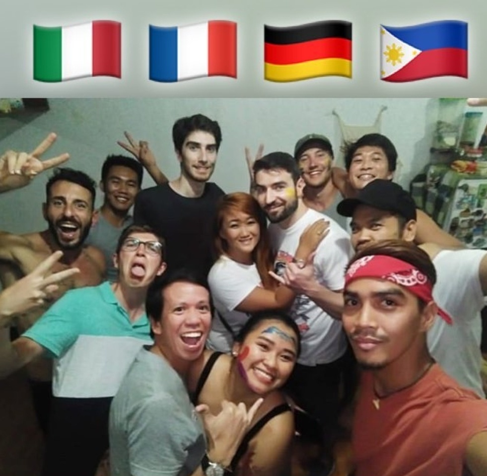 Après une bonne heure de transport dans ce trafic horrible, j’arrive au point de rdv, un grand hôtel de la ville. Je pensais que j’allais logé dans celui ci, avec Thomas, Glen et un autre français. Une longue attente de 30min, à essayer de capter la wifi d’un café. Puis quelques messages s’envoient, je reçois ceux de Thomas. Quelques minutes après, il arrive, avec Glen. Accueil chaleureux. Et puis Glen nous emmène chez lui. On emprunte une mini rue qui longe l’hôtel, mes espoirs d’endroit confortables s’envolent. On rentre dans un petit bâtiment, avec 1 étage, au milieu de cages pour poules. Ça sent pas bon. J’entre dans la maison, et je vois plein, plein, plein de gens. Peut être une dizaine. Ça parle anglais avec différents accents. Ou suis-je tombé ? Je pose mon sac au milieu des autres, je bois un coup. On fait les présentations, quelques filipinos, un italien (la définition parfaite du ritale), un allemand, un myanmarien (?, jsais pas le nom des habitants de ce pays), et surement des autres, je me souviens déjà plus, pas important. Bref, j’avais déjà envie de partir en courant.
